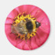 This magnet features a gorgeous close up photograph of a bumblebee sitting on a pink zinnia flower. It is so detailed you can see its furry body and glistening wings. This is a celebration of a much loved and very hard working little creature.
