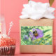 A fuzzy yellow bumblebee busy gathering pollen on a purple daisy and enjoying the beautiful sunny day. Send this image to a friend or loved one as part of a gift.