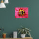 This beautiful print features a gorgeous close up photograph of a bumblebee sitting on a pink zinnia flower. It is so detailed you can see its furry body and glistening wings. This is a celebration of a much loved and very hard working little creature. The design is available in several different print sizes, the largest of which is shown here.