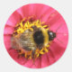 This set of round stickers features a gorgeous close up photograph of a bumblebee sitting on a pink zinnia flower. It is so detailed you can see its furry body and glistening wings. This is a celebration of a much loved and very hard working little creature.