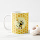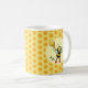 Cute bumblebee with Heart & Monogram on honeycomb background.