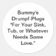 Bummy's Drumpf-Plugs "For Your Sink, Tub, or Whatever Needs Some Love." Comic Splash-Art Fake Business-Name sticker-design by Jeff Hankamer at Artjunkhaus