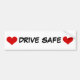 This bumper sticker with two red hearts and text of "drive safe" send a warm friendly reminder message to your car fellows on the road. Change the word to make it special.