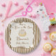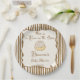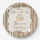 Bun in the oven baking baby shower monogrammed paper plates template. Hand drawn cinnamon bun wavy border baby shower personalized paper plates, baking baby shower personalized table decor printed paper plates, grand millennial baby shower party supplies