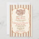 Styled in rich brown, cream, and terracotta tones, this design features soft vertical stripes, a gently scalloped frame, and a charming hand-drawn bread basket illustration that brings the beloved bun in the oven theme to life. The earthy color palette and cozy bakery aesthetic create a comforting, home-inspired feel—ideal for fall baby showers, neutral celebrations, or intimate open house events.