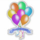 This vinyl sticker with a transparent backing is a bunch of bright colourful balloons in various colours with matching streamers and a blue banner that says Happy Birthday.