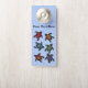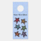 This paper door hanger is light blue with a bunch of abstract black turtles with colourful markings in various colours on their shells on the front and back. Customise your text on the front and back with the template.