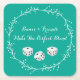 Arcadia coloured background can be changed to the colour of your choice. White decorative border and white Bunco dice accent your own favourite inspirational quote. "Bunco & Friends, Make The Perfect Blend"