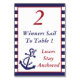 Hoist the sails it's time to play Bunco. Nautical themed Bunco table card includes an anchor and red, white and blue colour theme. You can change the text to make Bunco table cards from 1 to 100! Ship ahoy Matey! Bunco table cards are a great way to help other Bunco players transition from table to table. Table card can be used for weddings, anniversaries, birthdays, charity events, fundraisers, auctions and other festivities with a ship or nautical theme.