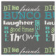 Fun and festive Bunco subway art typography novelty fabric. Background colour can be changed to fit your own colour design style. Text is done in white and different shades of blue green. Bunco inspired graphic design features words associated with the game of Bunco. Dice, Friends, Bunco, Laughter, Roll, Good Times, and Throw. Make your own Bunco fabric accessories such as table cloth, napkins, tote bags and other fun crafting projects. Great for Bunco quilters!