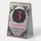 An elegant Bunco table card for your guests to appreciate. Help players move from table to table with this easy to ready and beautiful design. Elegant black border, large easy to read table number and instructions for staying put or moving on. Antique silver faux background adds a bit of decadence and style. . Modern text style. Look for table one, two and three.