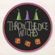 Throw The Dice Witches is perfect for your October Halloween themed Bunco party or fundraiser. Fun design features three witches hats and three dice with a flying witch design. Great coasters for your wine, beer, water, soda, punch and more. Makes a fun gift or prize.