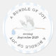 These bundle of joy stickers featuring blue and white stripes and a watercolor stork are the perfect way to seal your envelopes and show off your invitations!