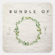 A baby shower sticker featuring an illustration of a green wreath incorporated into the phrase "Bundle Of Joy" Background is white brick.