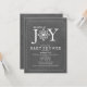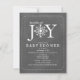 A neutral winter baby shower invitation featuring the phrase "Bundle of Joy" with an illustration of a snowflake incorporated into lettering in place of an "O". Background is chalkboard inspired. Customise the text with details of your occasion.