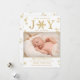 Simple yet striking, these "Joy" white and gold snowflake photo Christmas birth announcement cards will be perfect to send out to your family and friends this holiday season. The design is easy to personalize to make them unique to you and your new bundle of joy.