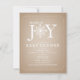A neutral baby shower invitation featuring the phrase "Bundle of Joy" with an illustration of a snowflake incorporated into lettering in place of an "O". Background is brown cardstock inspired. Customise the text with details of your occasion.