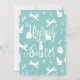 Cute illustrated invitation for Easter brunch and egg hunt: with bunnies, painted eggs and tulips and spring flowers drawn by the store owner, Mònica Roca on one side. On the other side, an adorable Easter design with bunnies and flowers in turquoise and white.