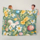 Bunnies, Spring Flowers and Easter Eggs. Painting Fleece Blanket