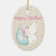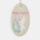 Bunny and Easter Egg Ceramic Ornament. "Happy Easter" (personalise this greeting).