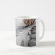 A cute little bunny rabbit checks out a jolly snowman on a winter day on this mug perfect for coffee or hot cocoa.