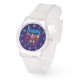 I only have one complaint. I ordered the watch with clear case and strap, and what was sent was white case and strap. I'm going to keep it because 1) it looks very nice in white, and 2) it would take too long to get a replacement made and sent in time for my occasion. Aside from the mix up with the color, the watch does look very good in white. The purple dial is actually sparkly which did not show in the online images. That was a nice surprise. If you like Swatch watches this is very similar to those. It's 33.6mm in diameter, 10.5mm thick, and 40.6mm lug to lug. Stainless steel case back says 3ATM/30m WR, so no swimming or showering or submerging this one. If you like Woodstock, this is a great choice.