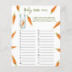 Gender neutral baby shower invitations. Featuring the saying 'A LITTLE BUNNY IS ON THE WAY!', an illustration of a watercolor bunny (rabbit) with carrot in paws, and many orange colour carrots. Matching items available.