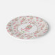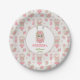 Lovely paper plates for a ballerina girl birthday party, featuring cute ballerina bunny on a swing, with floral accents. This design is customisable and personalised - you can change the name and other text on this card. Pink and green tones.