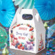 Add a sweet and whimsical touch to your little one’s Berry First Birthday with this adorable favour box! The design features vibrant watercolor strawberries, blueberries, and blackberries framing a festive stack of pastel gift boxes. On the side, a cute bunny peeks over the presents, adding a delightful woodland charm. These favour boxes are perfect for holding candies, small toys, or party goodies – the perfect send-off for guests at your berry-themed celebration!