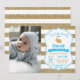 Bunny 1st First Birthday Invitation with custom photo. Boy Little Bunny. Easter Egg Bday Invitation. Rabbit. Egg Hunt. Blue and Gold Glitter. Gold Glitter Stripes Background. 1st 2nd 3rd 4th 5th 6th 7th 8th 9th 10th 11th 12th 13th 14th 15th, Any Ages. Printable Digital. For further customisation, please click the "Customise it" button and use our design tool to modify this template.