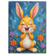 Bring a burst of happiness and charm into your space with this delightful artwork of an adorable, giggling bunny nestled among blooming flowers. The cheerful yellow bunny, beaming with pure joy, is framed by vibrant wildflowers in shades of orange and purple set against a textured blue backdrop. With its blushing cheeks, and joyful expression, this artwork captures the spirit of spring and the innocence of nature in a whimsical, heartwarming style.
