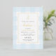 Bunny Blue Gingham Baptism Gold Foil Invitation