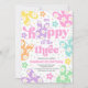Bunny Daisy Floral Pastel Spring 3rd Birthday Invitation