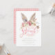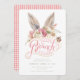 This fun Easter Brunch invitation features watercolored bunny ears over the words "Easter Brunch & Egg Hunt." All the invitation details are directly below on a bright white background. The back side is a coordinating pink gingham pattern.