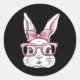 Bunny Face With Pink Sungles Bow Tie Easter Day Gi Classic Round Sticker