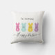Bunny Family of 4 Easter Throw Pillow. Enter your names, you can also change the colour of the bunnies. This design can be transferred to any product offered by Zazzle. If you need any help please feel free to email me at KymberliDesigns@gmail.com
