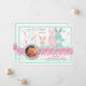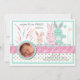 A cute birth announcement featuring a bunny family and a scalloped, round, photo window for the new baby's picture. (FP)
