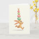 This card shows a brown bunny with long ears and a fluffy white tail hurrying across a soft, creamy background 🐇. Its bent arms and wide eyes give it an eager, caring look, as if it’s rushing to bring a small surprise to someone special. Balanced on its head is a tall stack of four pastel eggs in pink, yellow, and mint green, decorated with stripes and polka dots. Sitting on the very top is a tiny bunny companion wearing a simple little cap, reaching out with open paws as if sharing a delighted, friendly moment 🐰. The gentle shading and smooth color transitions make the pair look rounded and touchable, while the empty backdrop keeps all attention on their shared mission. A short Easter greeting appears near the top in a soft spring color, with a smaller line of text tucked below it in a lighter tone. Beneath the running bunny, a faint gray shadow stretches along the ground to anchor the motion.