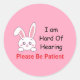 Bunny Hard of Hearing Classic Round Sticker