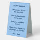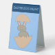 This awesome table tent Easter egg hunt sign features an adorable image of a happy bunny created using vector art. The bunny is grey and it has a big smile on its face. The bunny is hatching from an egg. This weird and funny design is sure to amuse anyone. There is custom text on the front and back so you can personalise your sign.