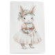 This adorable white bunny rabbit in a dress is a sweet spring time illustration with her crown of flowers on her head.