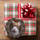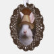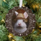 A bunny on a Christmas card with a brown border and white chalk designs.