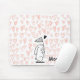 Cute illustration of a bunny catching hearts with doodle blush hearts as a background in a seamless pattern. Customise with your own monogram in handwritten font
