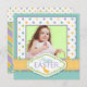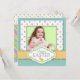 Sweet bunny with 3D-look buttons and trims over dot print and an Easter tag photo invitation card.