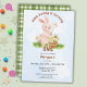 Make your child’s first birthday extra special with this adorable bunny-themed invitation! A watercolor bunny, a basket full of daisy flowers, and a tiny buzzing bee set the scene for a picture-perfect celebration. With a soft blue sky, dreamy clouds, and a touch of script and serif fonts, this design is as sweet as your little one! The easily customisable text allows you to add all the party details in a snap. Plus, the green plaid pattern on the back adds a classic, cosy feel.
