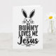 This card features a minimalist rabbit head centered near the top, outlined in black with long ears, fine whiskers, and a small heart-shaped nose that feels like a gentle nod from a close friend 🐰. Beneath it, stacked lines of text are arranged in a neat, centered layout, with the first words set in a sturdy sans‑serif style in solid black. The word “BUNNY” sits prominently in the middle and is filled with an abstract, spot-like texture that adds a cozy, affectionate touch, like a shared inside joke between two people 🐇. Below that, the final word appears in a flowing cursive-style lettering, with smooth curves that read like a soft, romantic sign-off. All elements stay in a high-contrast black-on-white palette, giving the rabbit and lettering plenty of breathing room. The generous white space around the design makes the bunny’s face feel like it’s leaning in, while the layered text below feels like a quiet conversation unfolding line by line. The top icon is small and centered, and the textured “BUNNY” stands out as the darkest, most patterned element against the plain white background.