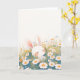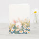 A peaceful white rabbit with blushing cheeks is nestled among a field of daisies, eyes closed as if enjoying a moment of serenity. The soft watercolor-style illustration gives a gentle and calming atmosphere, with delicate shades of green, blue, and yellow creating a harmonious nature-inspired setting. The dreamy floral meadow surrounding the rabbit enhances the sense of warmth and tranquillity. This whimsical and charming design evokes feelings of relaxation and joy, perfect for nature lovers and those who appreciate adorable woodland animals.