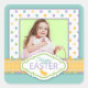 Sweet Easter bunny over dot prints and 3D-look stripe and gingham check print trim Easter photo sticker.