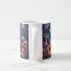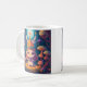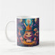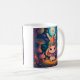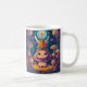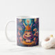 Colourful bunny queen in a forest with mushrooms. Night scene animal illustration mug with a magical whimsical style. Adorable kitchen drinkware.