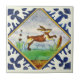 From around 1650, this hand painted tile features a bold border and a diamond framed long-eared hopping rabbit. Available in 4.5 and 6 inch tiles as well as other items.